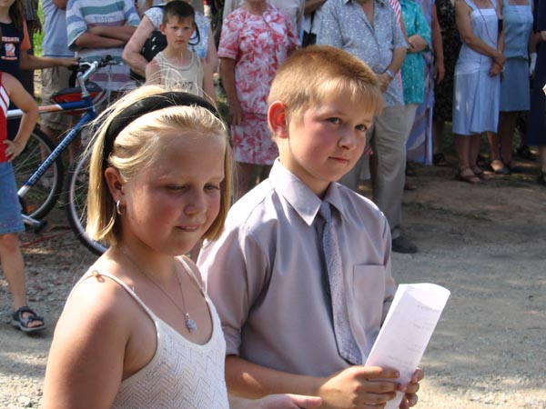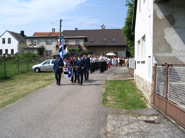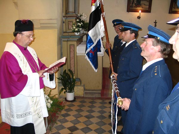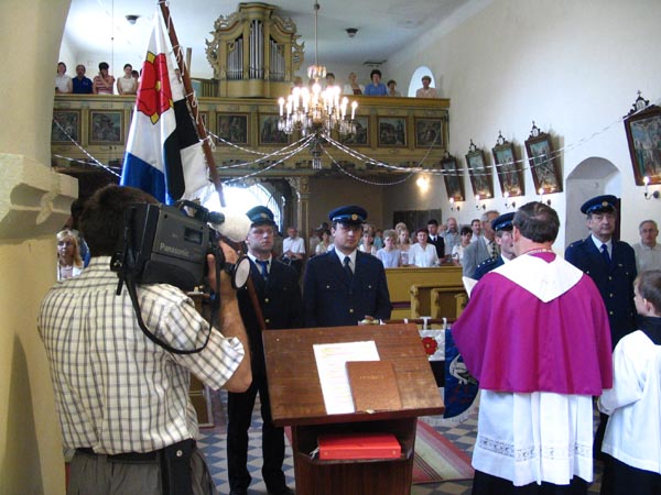 Mše svatá v místním kostele a vysvěcení obecního praporu a znaku