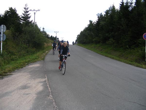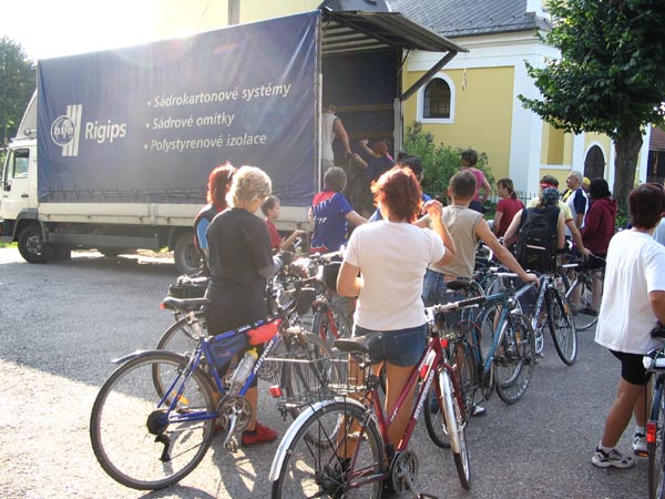 Konečně, kolem 11. hodiny dorazil autobus. Všech 75 cyklistů se do něj úspěšně natěsnalo a vyrazilo se směr Šerlich.